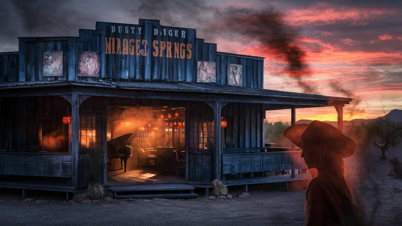 One fateful evening, a lone gunslinger named Red Dust Riley rode into Mirage Springs, his eyes burning with a fierce determination.