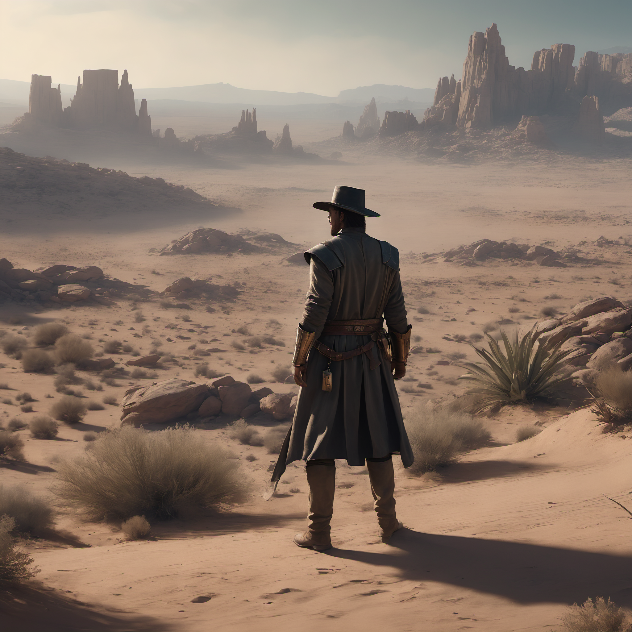 The Dreamer was a man of few words, clad in a long coat that seemed to ripple and shimmer like the desert itself.