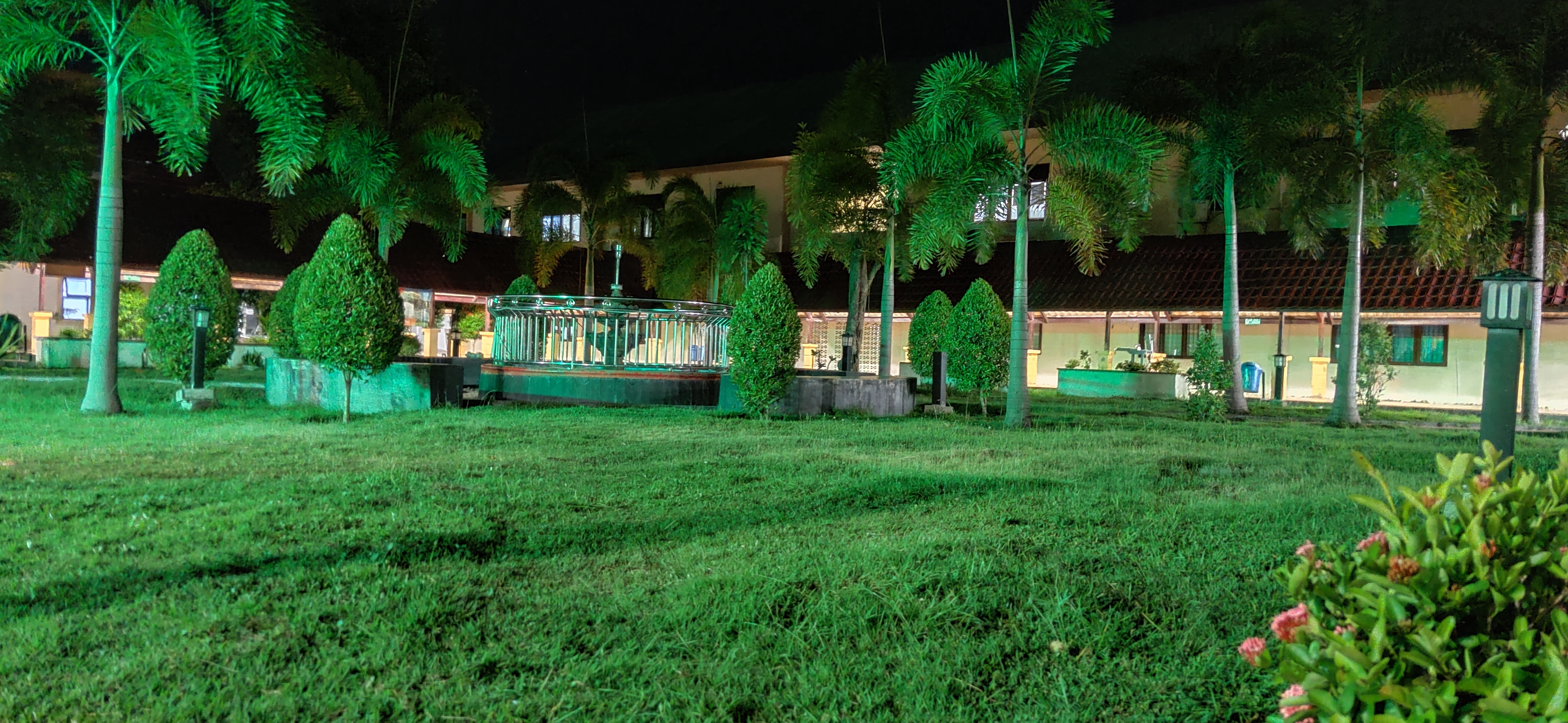 Suasana taman di samping Departemen Radiologi di waktu malam