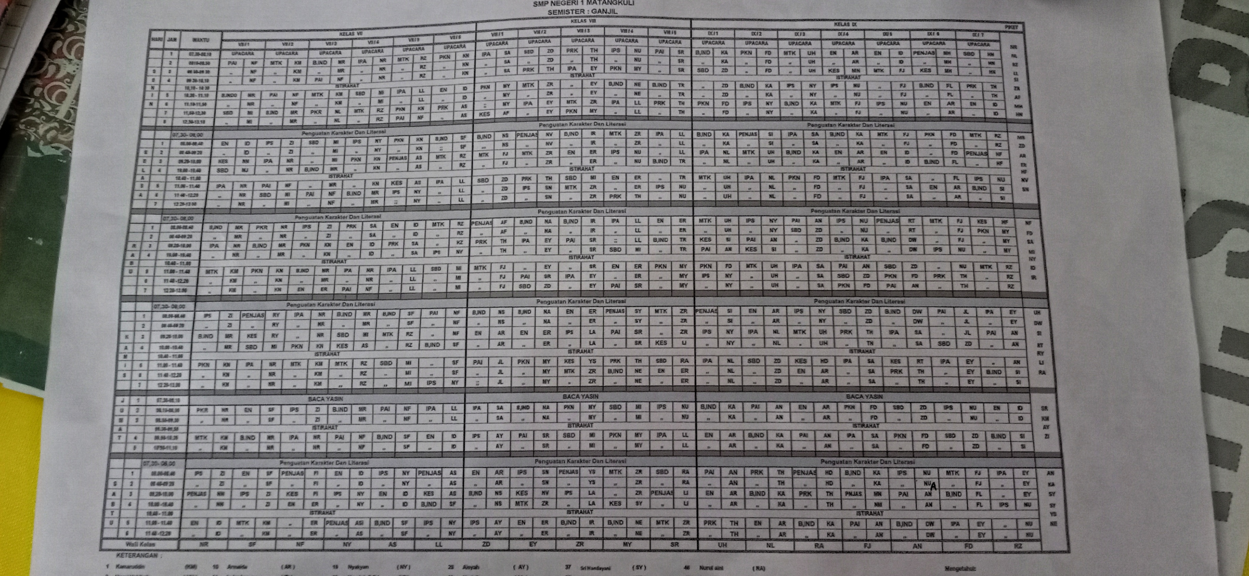 Jadwal mengajar yang di berikan oleh wakil kepala bidang kurikukum