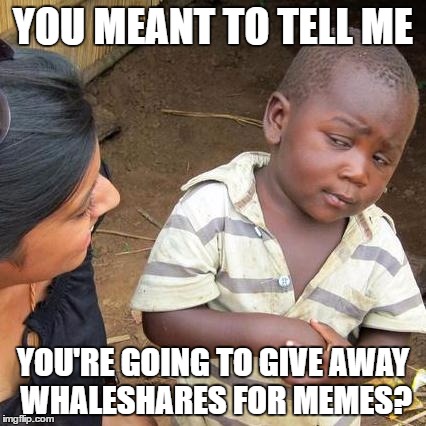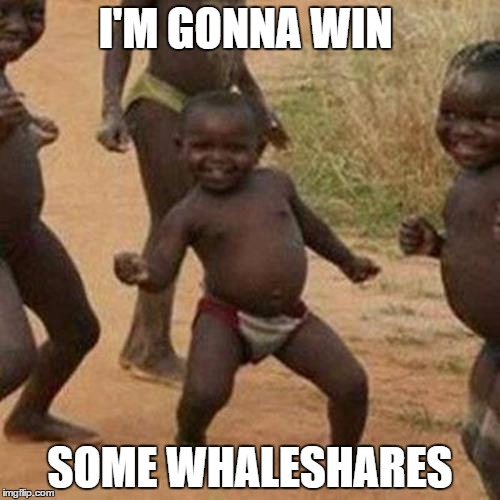 What internet warrior doesn't love memes? Whether it's doge, snek, Pepe, or the little African kid, we love them all. So we decided we would throw a contest to see who could make the funniest memes and give away some whaleshares!