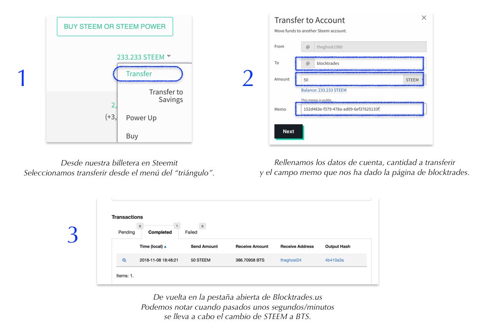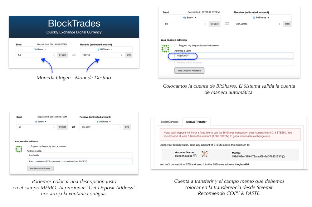 Cambiando STEEM/SBD por BTS desde Blocktrades.us
