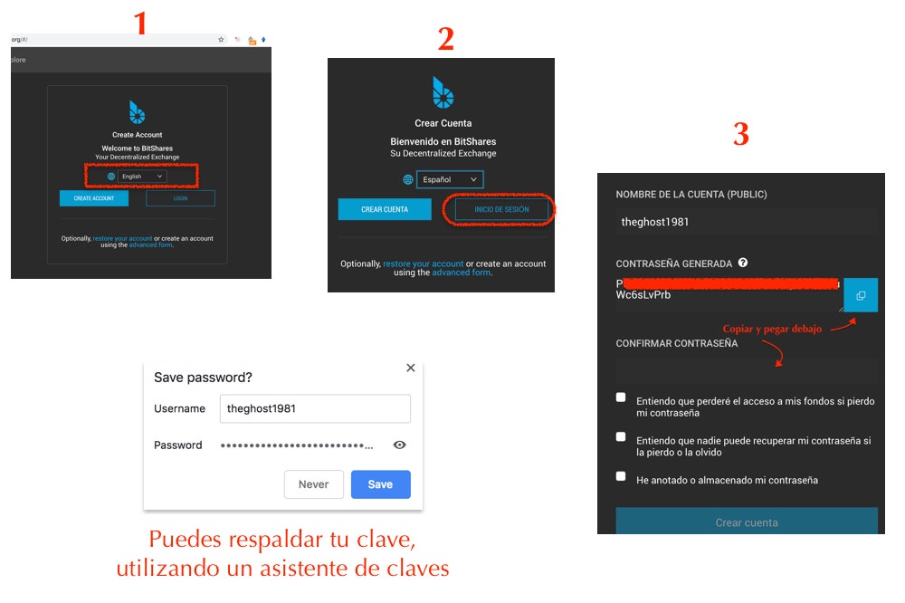 Creación de cuenta en Bitshares.org y/o Rudex.org