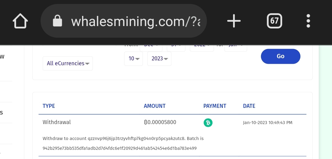 Proof payment from whalesmining.com