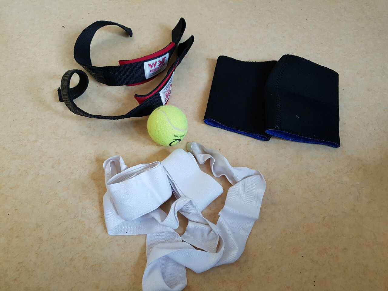 가운데 테니스 공은 테니스 치려고 가지고 다니는 건 아니고... 근막 이완을 해줄 때 공을 바닥에 놓고 몸으로 지긋이 눌러주면 효과적이라 가지고 다닙니다.