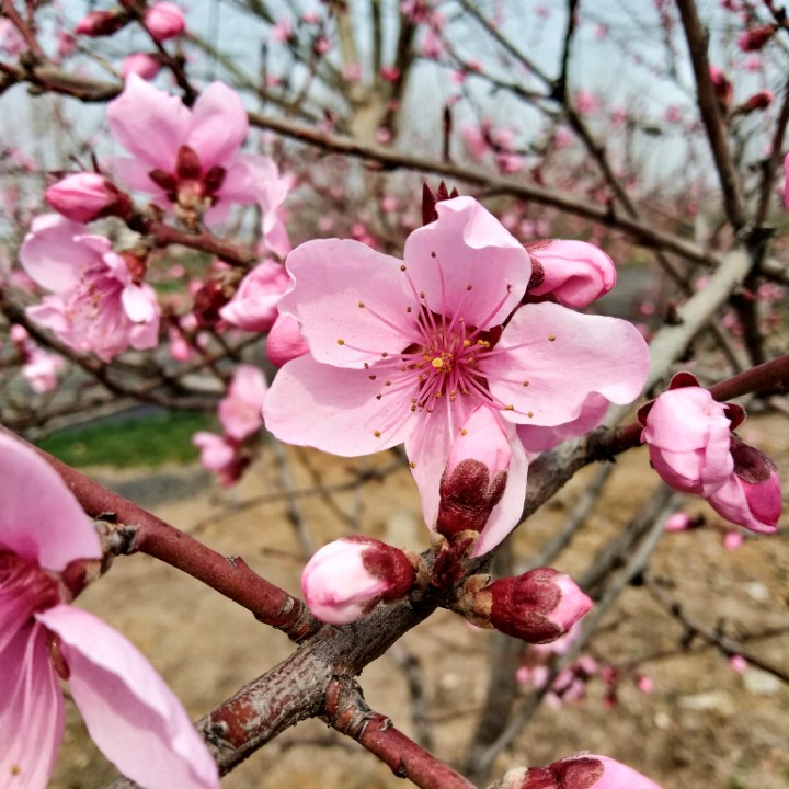 我突然惊喜地发现:家门外的公园里,前几天还是含苞待放的一片桃林,竟然红艳艳的盛开了,从远处看如火似霞,十分好看;鹅黄嫩绿的青草芽子从往年的枯草中钻出来,显示出一片勃勃生机;公园旁边小河里春水蔚蓝、碧波荡漾,成群结队的鸭子在水中游玩嬉戏;岸边的柳树,像少女的秀发,在微风中轻轻摇曳。这时候还不见燕子的身影,她们似乎还在北返的路上,只有三五成群的小麻雀站在树木的枝头,叽叽喳喳,好像谈论着春天的故事。