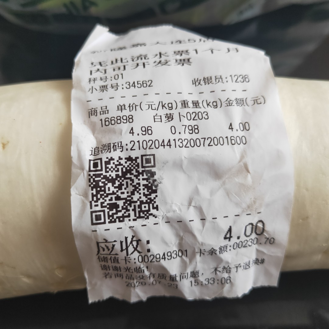 一根白萝卜:4元