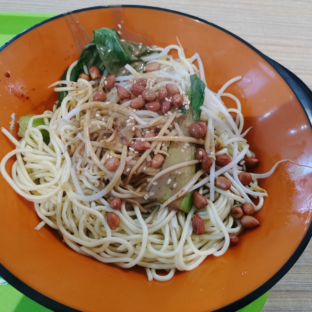端起这碗热干面的时候,香气先一步钻进鼻子里——碱水面裹着浓郁的麻酱,撒上脆生生的花生、豆芽和青菜,光是看着就食欲拉满,搅拌的时候每根面条都裹满酱汁,入口是熟悉的咸香筋道,碳水带来的满足感瞬间漫上心头。