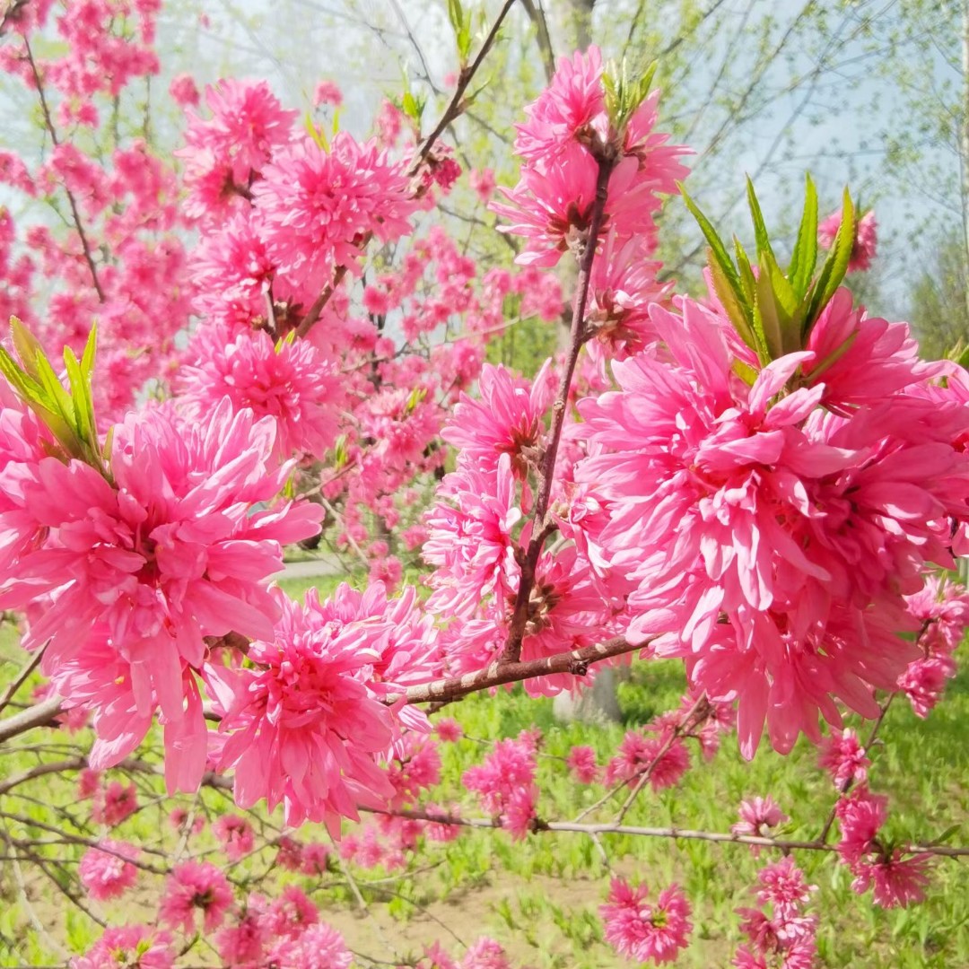 路过公园时,一眼就被这开得热烈的桃花撞了个满怀。层层叠叠的花瓣像被精心雕琢过,玫粉色的花团缀满枝头,在阳光下闪着温柔的光,风一吹,花瓣轻轻晃动,连空气里都飘着淡淡的甜香。