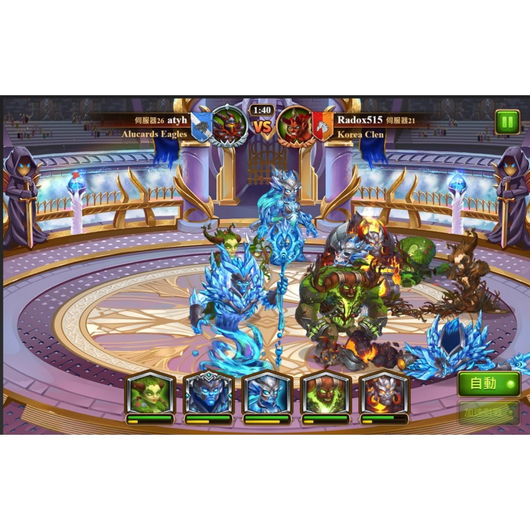 除了無盡的地牢外, 今天也手痒跑去跟其他玩家的泰坦人PK, 果然,有了會補血的做輔助之後, 各泰坦人都耐打好多, 第一階段的5隻被我輕鬆搞定,到第二階段打能KO 2-3個對手,但暫時的極限也就停在第二階段的2-3個了,之後的戰力都是35000+ (我現在剛3萬出頭), 所以短期內應該都難有突破, 唯有把其他泰坦人都盡力升級到35以上,等他們耐打一點吧.
