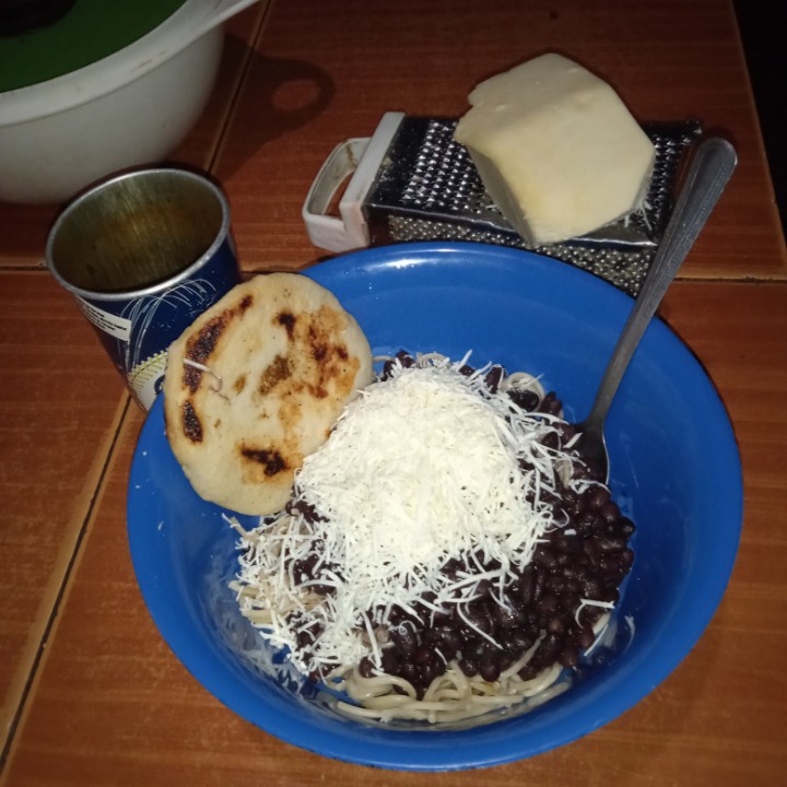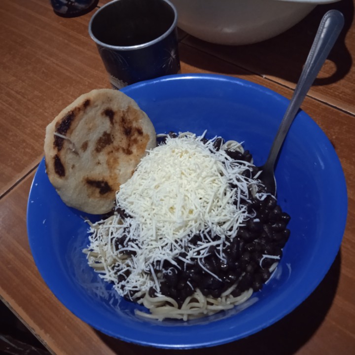 Buenos días comunidad wherein, como están ? Hoy gracias a él Altísimo he podido laborar como es y espero seguir así pero hoy quería compartirles un almuerzo muy sabroso, el cual era pasta con caraotas un queso blanco muy sabroso y una arepa con café para acompañar el almuerzo.