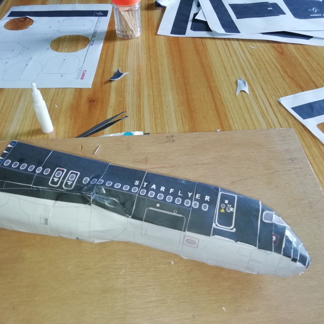 我最近在网上看到做手工纸飞机的视频,我把图片保存下来,然后打印出来,上面的图纸都需要用小刀去切割出来,最后一层层粘在一起,我做了两个晚上,终于把飞机身体做好了。飞机的机翼还没完成呢,我做纸飞机手工时还直播了,大家也来看看吧。