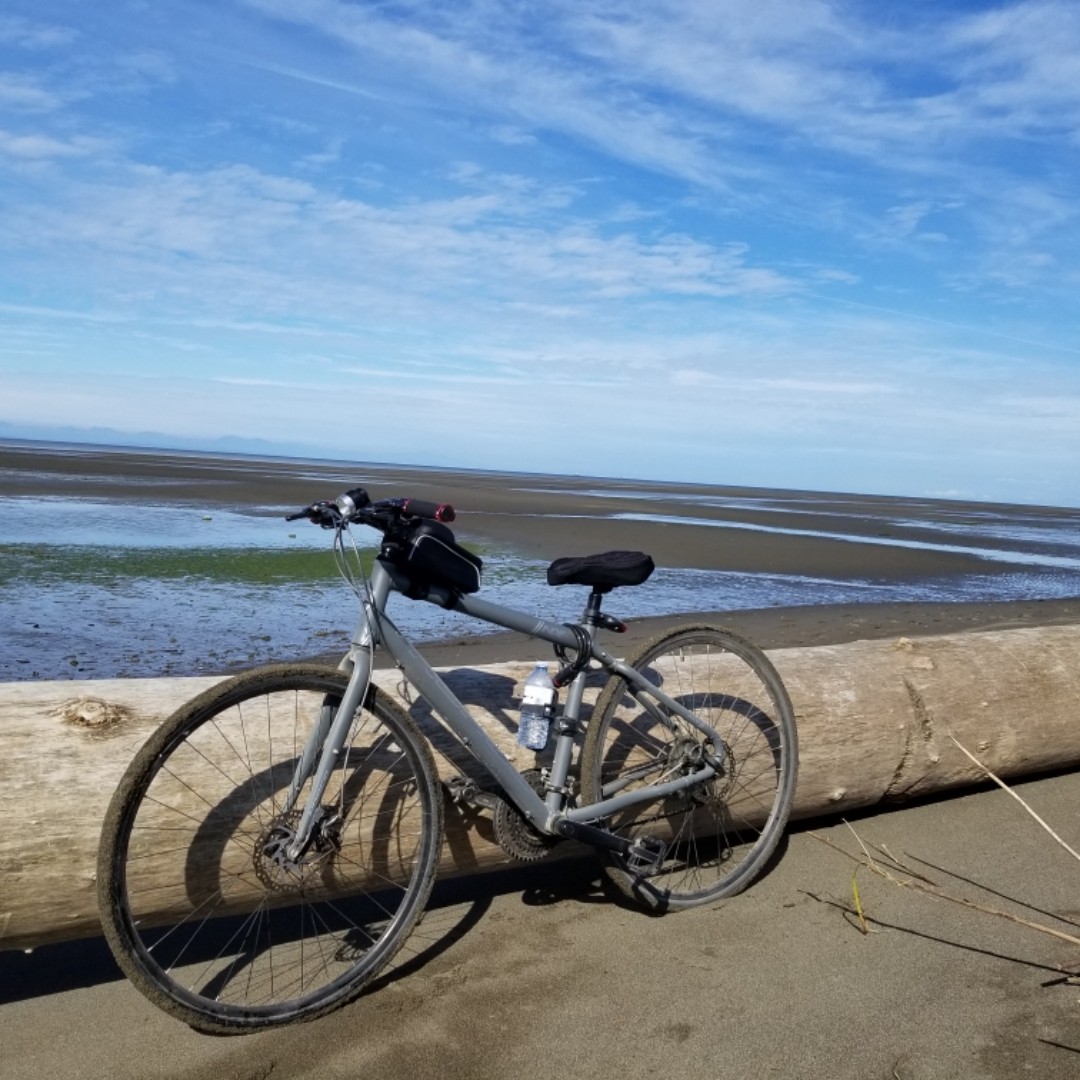 今天天氣很好,大清早跟朋友延著 green belt 騎單車一直騎到溫哥華史丹利公園,路上高低起伏,上坡難行,我只好下來推車........下坡路段像雲霄飛車直奔而下,還好周六的早晨路上人車稀少,不然嚇都嚇死了。