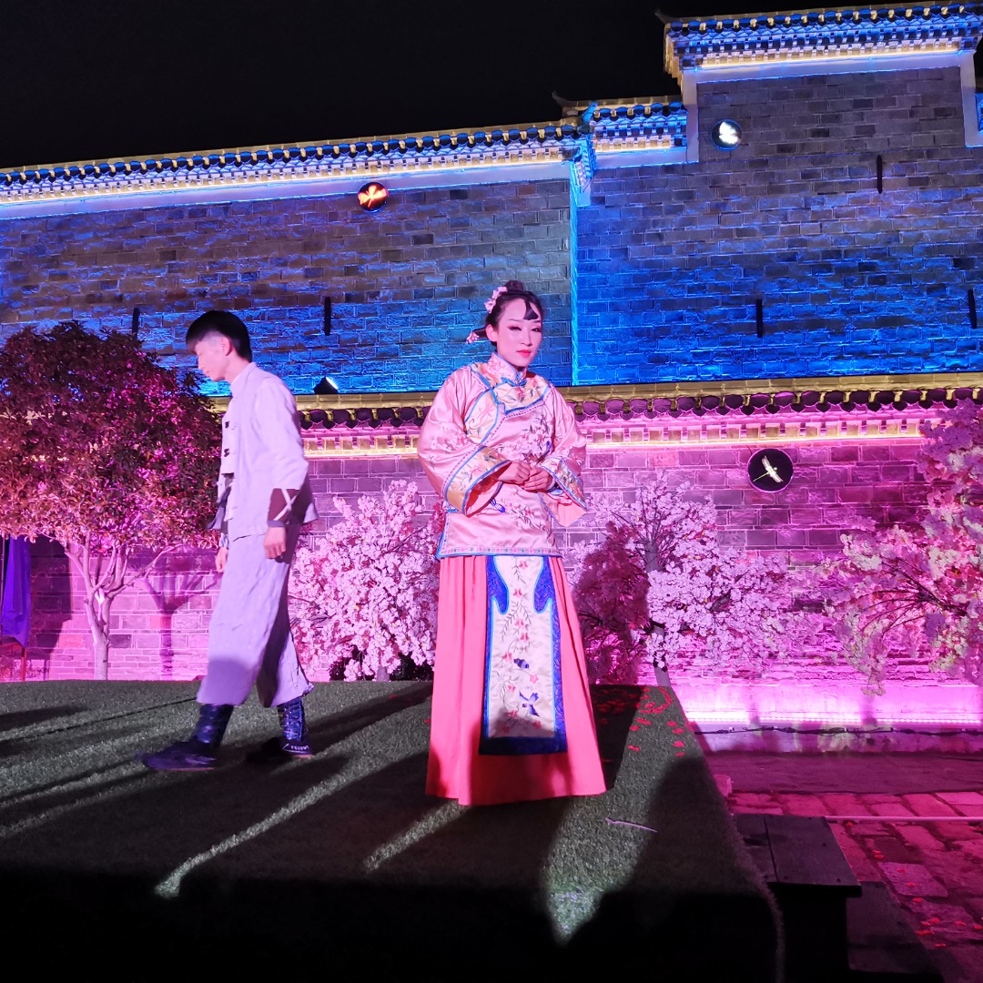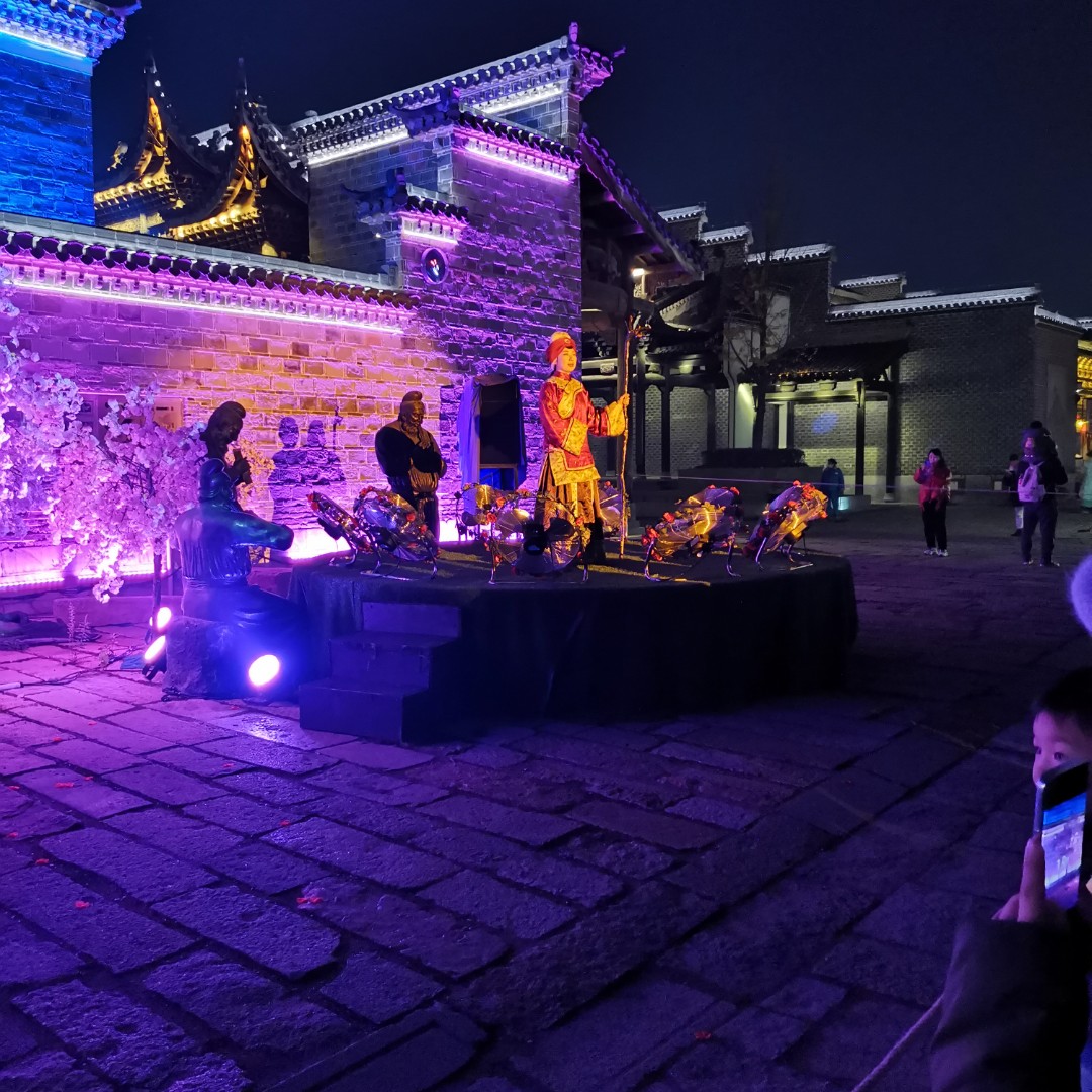昨晚饭后突然决定去鸠兹古镇,特地带上身份证和户口本。到了之后,没有用到户口本,进去之后发现今晚的人数比上次少多了!又碰上演出,这次没有带小宝,人数又少,总算看了一出完整的戏:徽州往事,讲述了清末年间徽州商人一段爱情与奋斗的故事,一个戏子与富商家的千金相爱,富商家提出三年之约,如果三年后事业有成就将女儿嫁给他,果然,三年间,戏子奋斗成事业有成的米商,最终抱得美人归,看得真过瘾!中间一段枪战,距离表演很近,看得心砰砰跳!