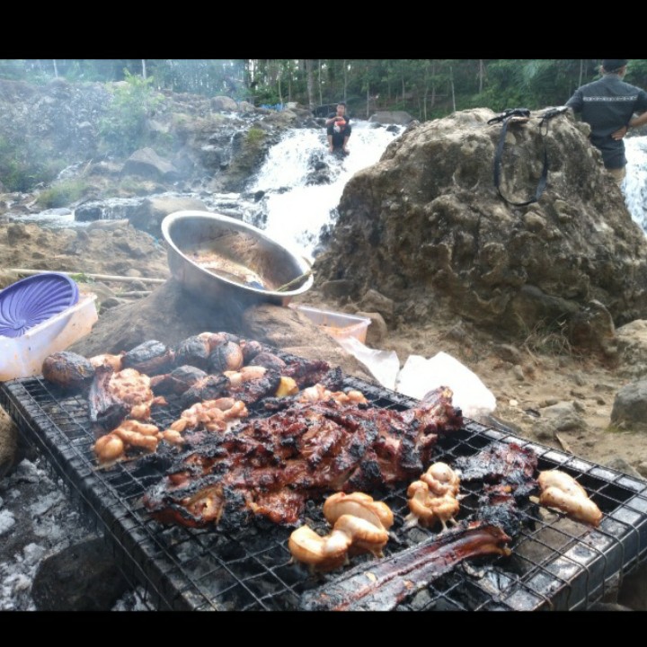 Keindahan tempat wisata air terjun inilah yang membawa kami datang kesini bersama dengan para sahabat. kami bisa menikmati suara dentikan air dan derunya suara ombak. untuk membuat suasana yang sempurna, kami juga membakar 1 ekor kambing untuk dinikmati sambil duduk diatas bebatuan di bibir sungai. Sesekali kami bersenda gurau sambil menceritakan pengalaman satu sama lain.