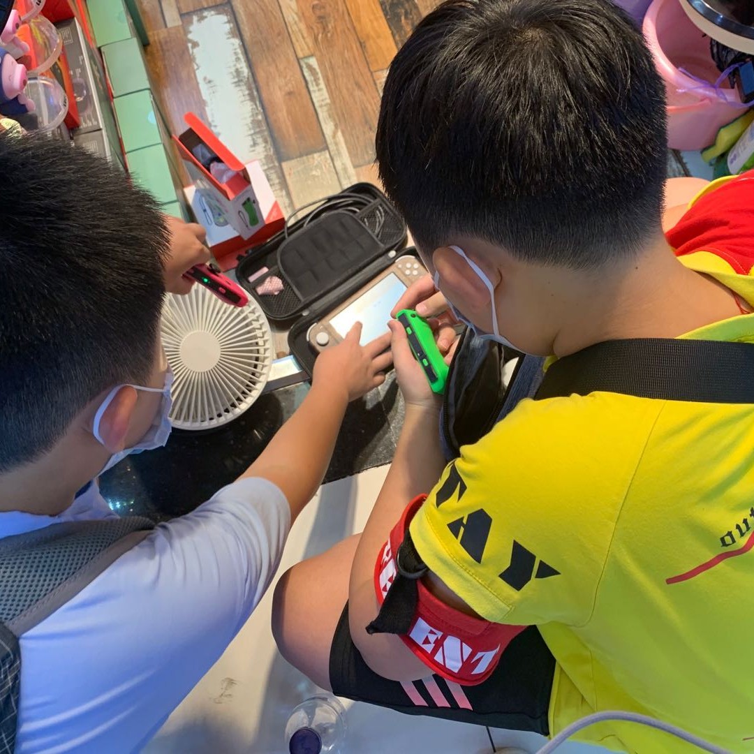 弟弟看到这个手柄想要买很久了,有了这个手柄之后,他就可以和哥哥一起玩了,于是在调试是否能连上他的游戏机,没想到他还把switch游戏机带出来了。