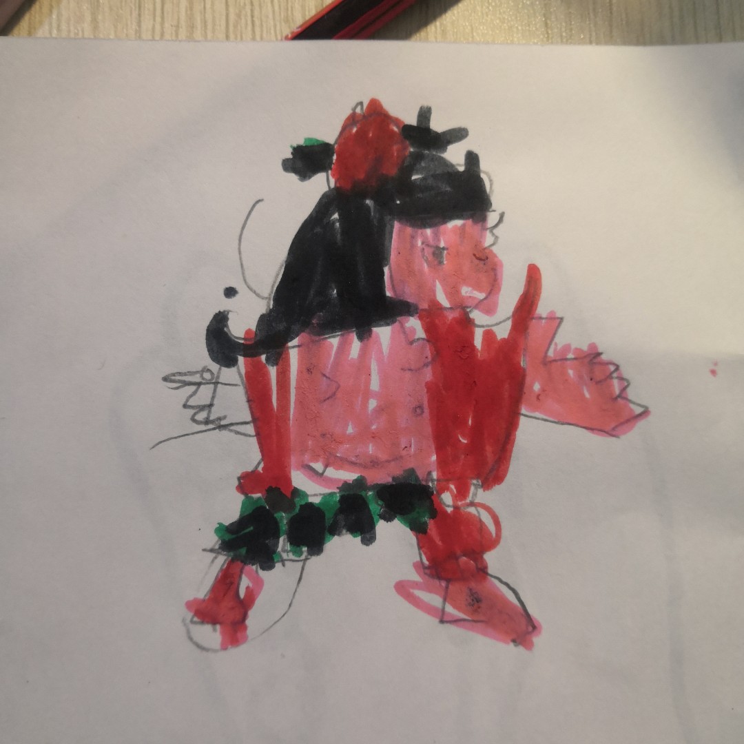 昨天说小宝贝要画葫芦娃,结果给比着手掌画了个小鸟。但是心愿还是要满足,也给找了画葫芦娃的教程,我和她一起画。其实我的比例画的也不怎么对。不过小宝贝画的小胳膊小腿,比例虽然不对,但Q感十足,效果很不错!