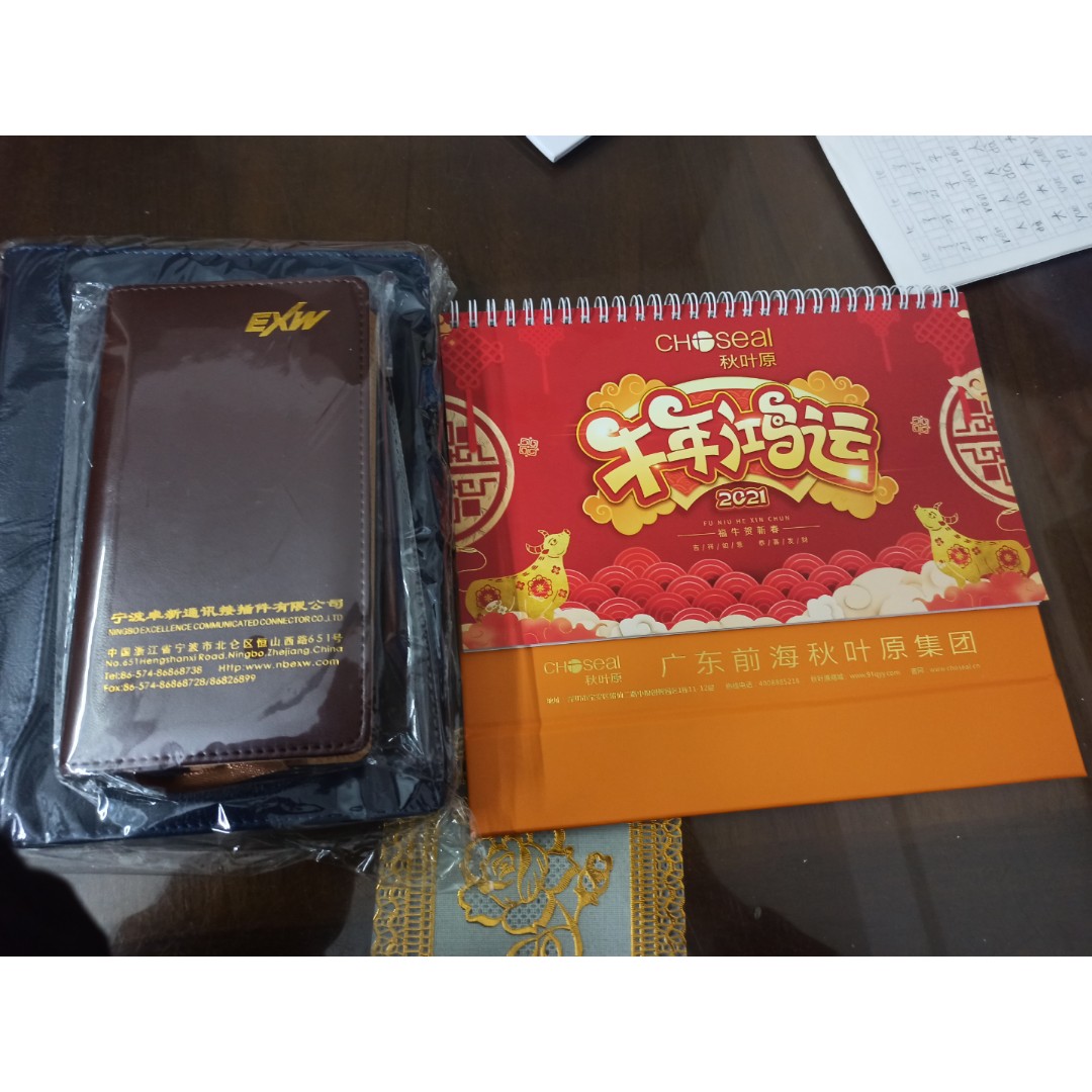 今天公司发了台历,讲真,台历对我来说真没什么用,因为要看日历的话都是看手机比较方便,但是有我相片在,我就要了一本当留念吧。除了日历还有两本笔记本,这笔记本还有点用处,可以记录下工作或其他,还是仿皮面的,有点高大上的感觉。