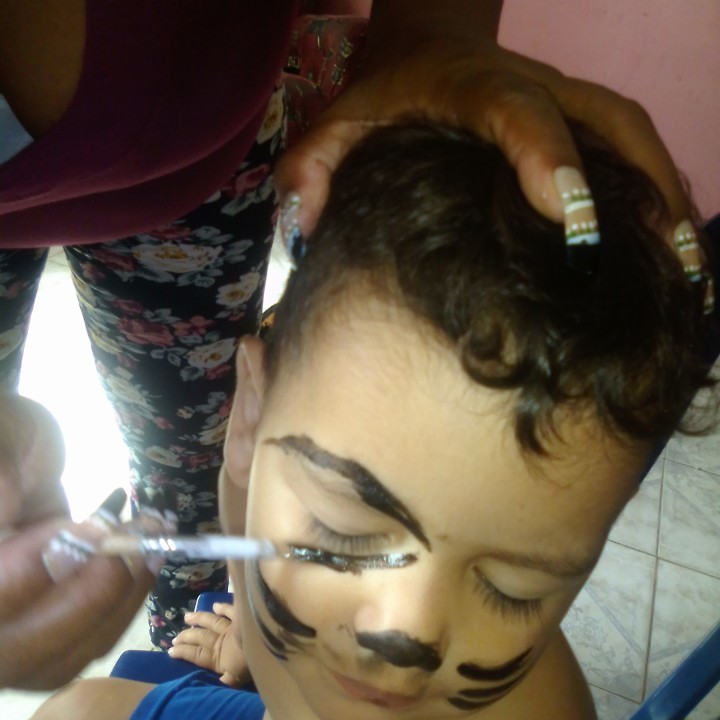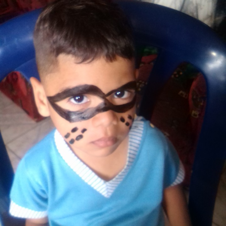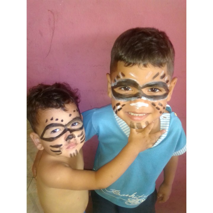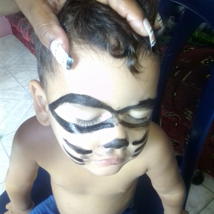 Hoy con el chino inicio de la época de carnaval me dediqué hoy a pintar la cara a los dos pequeños de la casa