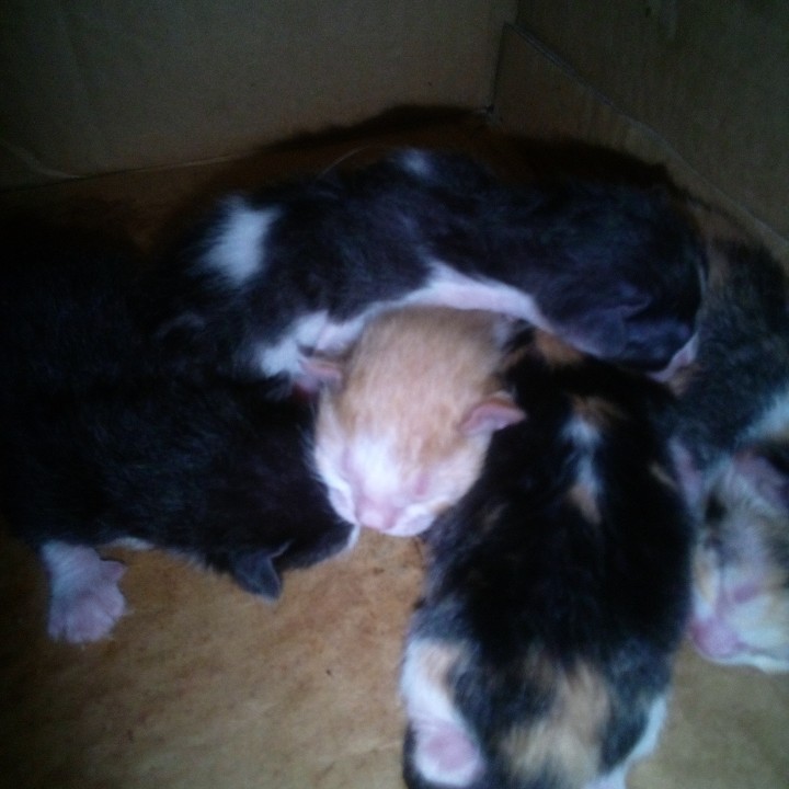 Holaaa aquí les muestro los hijitos de mi gatita, ella es primeriza y estaba muy nerviosa cuando sentía los dolores para dar a luz.