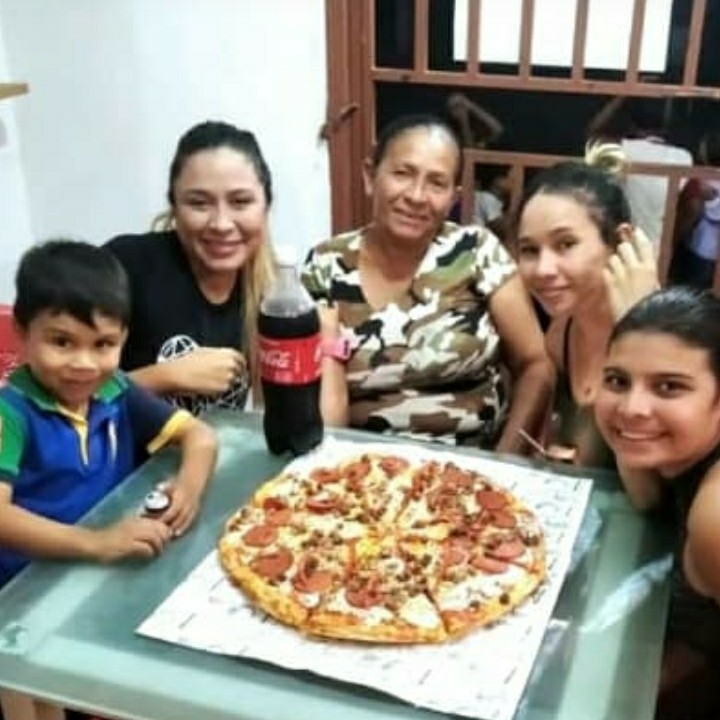 Hoy mi tia carmen esta de cumpleaño fuimo cerca de mi casa para compartir con mi tia una rica pizza.