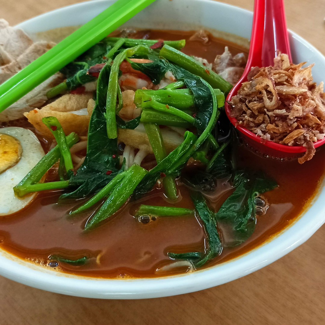 Breakfast was at home with a cup of milk shake, and it doesn't last. before lunch hour, I went to Okay restaurant and got myself a bowl of prawn noodle. Seriously, at this point, all I care is how it taste like. Looking at the spiciness, and also the broth being reduced by using prawn head, it's sweet!