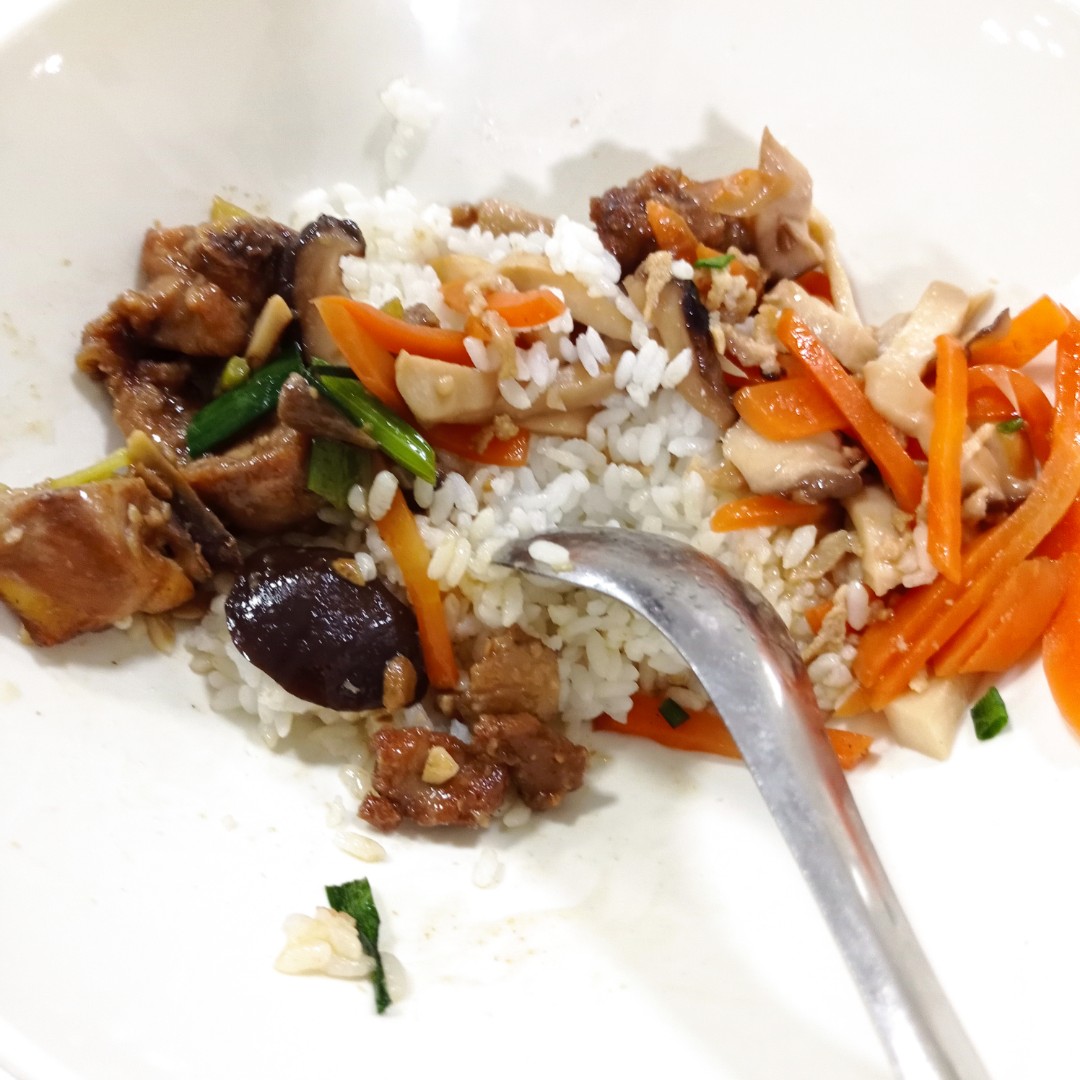 今天跟我室友去食堂点了个小鸡炒蘑菇,她硬是要说成小菇炒蘑鸡😂阿姨都懵了。不过还是挺好吃的!