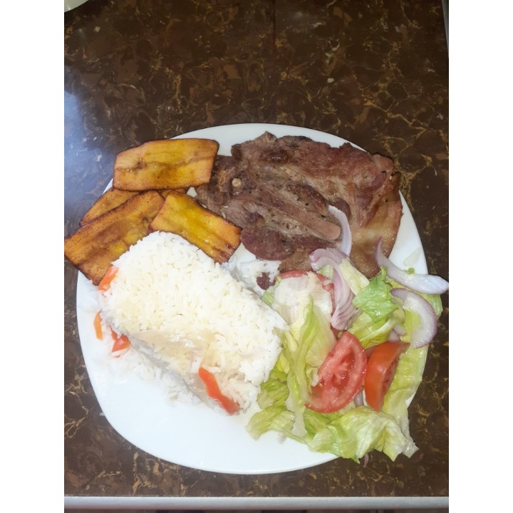 Buenas tardes amigos de wherein , primeramente gracias a Dios por un día más de vida , en el día de hoy quise comer de almuerzo chuleta , arroz , tajadas , ensalada de tomate , lechuga y cebolla. Gracias a Dios por este sustento , me voy a disfrutar de mi comida gracias por leer mi post.