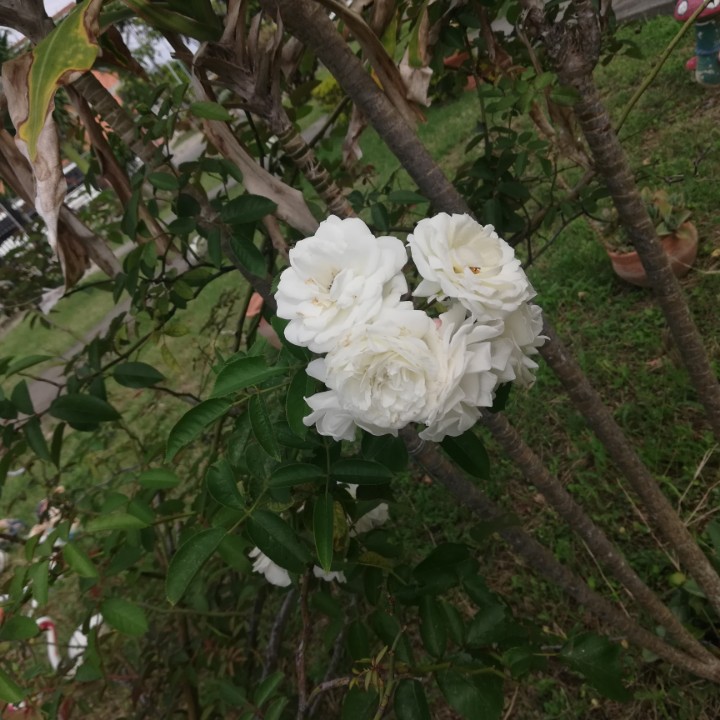Una flor muy bella que se parece a una rosa pero está realmente no es una rosa, es un flor con muchos pétalos a su alrededor y su rama no tiene espinas por ningún lado, de hecho sus hojas parece a las de la mata de limón. Me gustó mucho porque además tiene en algunos lados de 3 a 4 flores todas juntas.