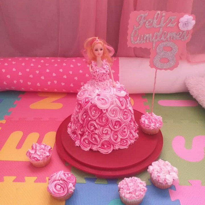 happy day friends, I share with you this beautiful vanilla cake covered with pink roses made with Swiss meringue and some vanilla cupcakes decorated with the pastry bag, this request was for a very special little person for me, who was yesterday's birthday ... thank you to God for allowing me to continue learning and doing what I like, thanks also to my clients for the trust, support and purchase that is worth gold for me.