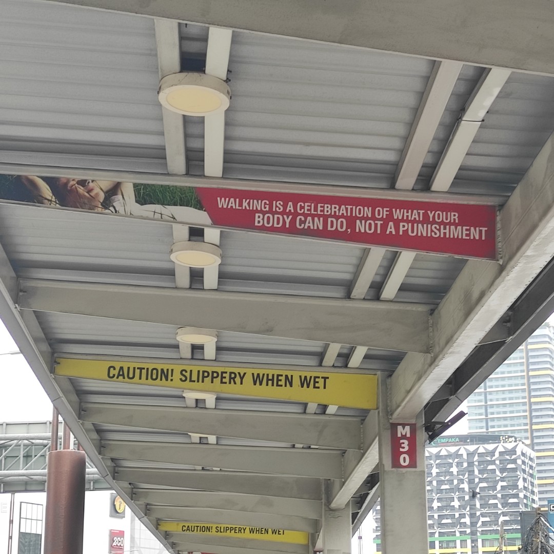 昨天休假外出处理一些事物,路过这条走廊。这是通往地铁站的一条人行道。