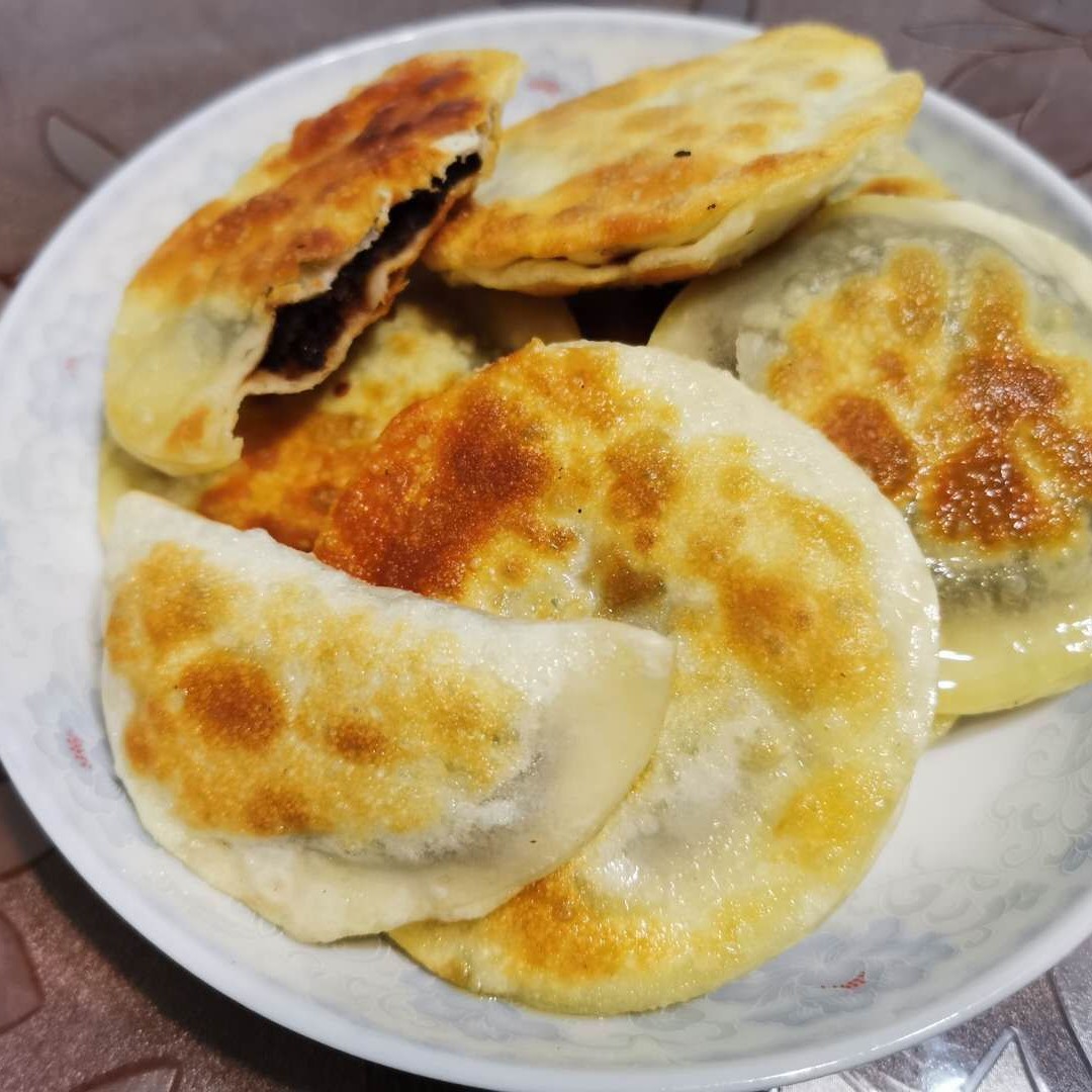4)开小火,煎锅倒油,一层薄薄的底油,把包好的饼一个个码好,煎至两面金黄即可。