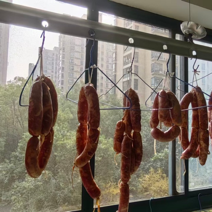 之前都是去批发市场批来的。老妈每次都会批个十斤,选那店里最好的,大概一斤三十元。吃这个香肠也是觉得好贵哦。