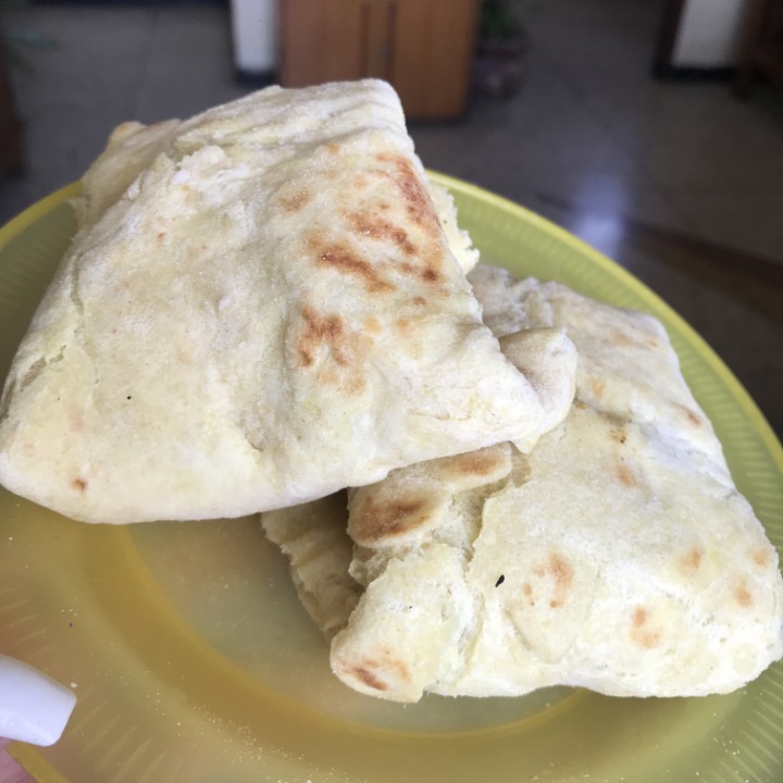 Hola amigos, espero se encuentren súper bien, yo estoy excelente Gracias a Dios, les cuento que el día de ayer me levante temprano a atender a unas clientes, termine a la hora de almuerzo y mi abuela me dio una especie de roti que ella inventó, no era el roti que siempre hace, porque lo hizo súper rápido , pero igual estaba súper rico.