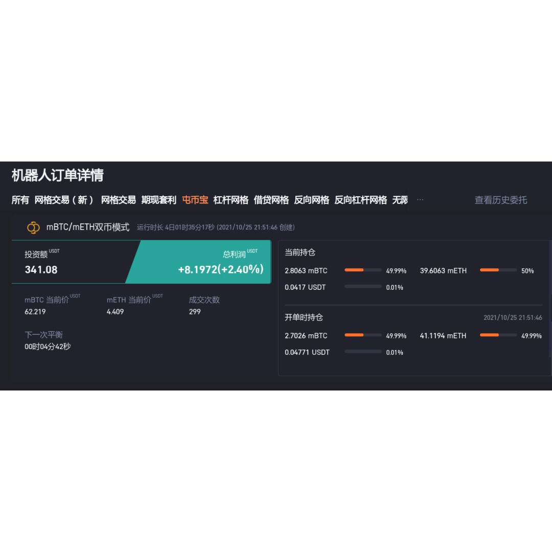目前测试了网格,期现套利,屯币宝,感觉屯币宝更省心且收益更好一些。