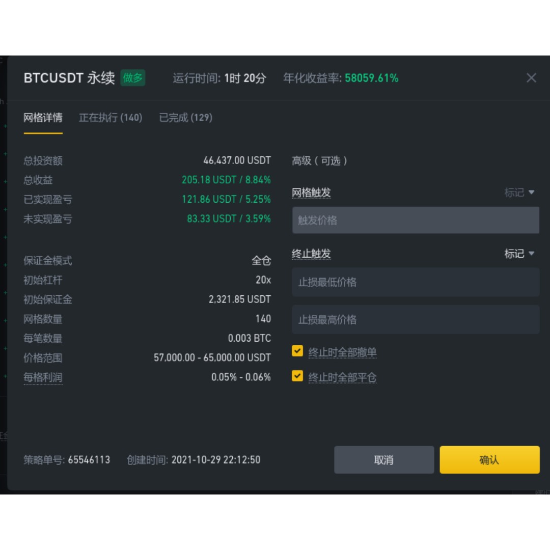 另外昨晚运气太好了,在btc开涨前,在币安上开了网格,瞬间收益拉满。