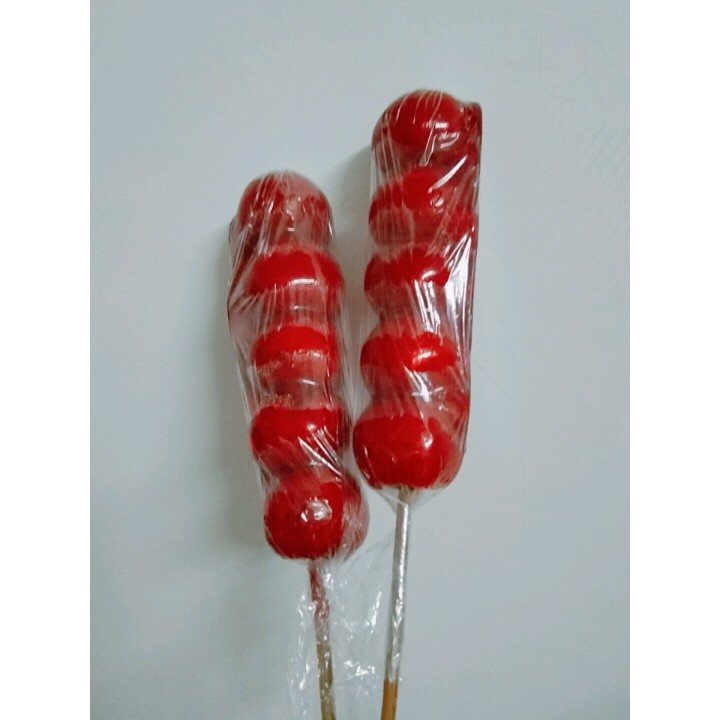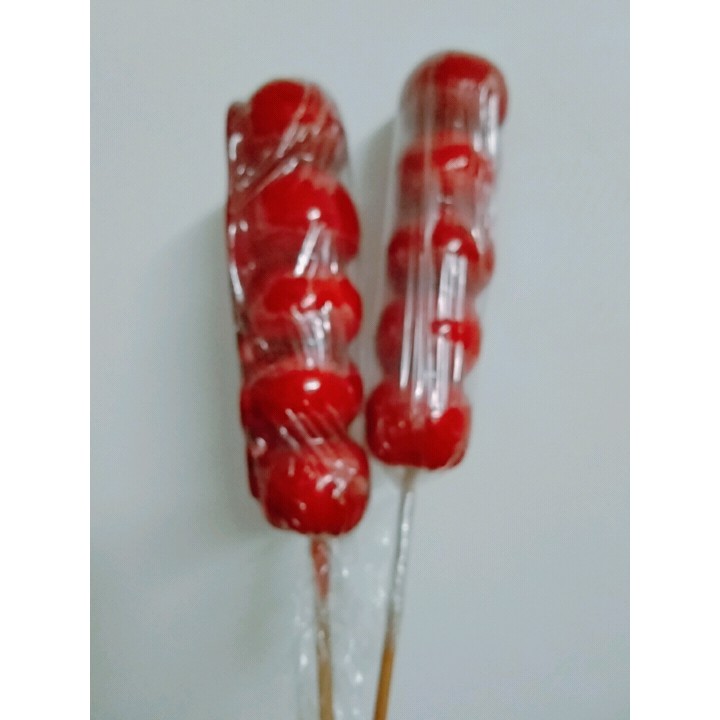 冰糖葫芦又叫糖葫芦,在天津又称糖墩儿,在安徽凤阳叫作糖球。冰糖葫芦是中国传统小吃,它是将野果用竹签串成串后蘸上麦芽糖稀,糖稀遇风迅速变硬。北方冬天常见的小吃,一般用山楂串成,糖稀冻硬,吃起来又酸又甜。