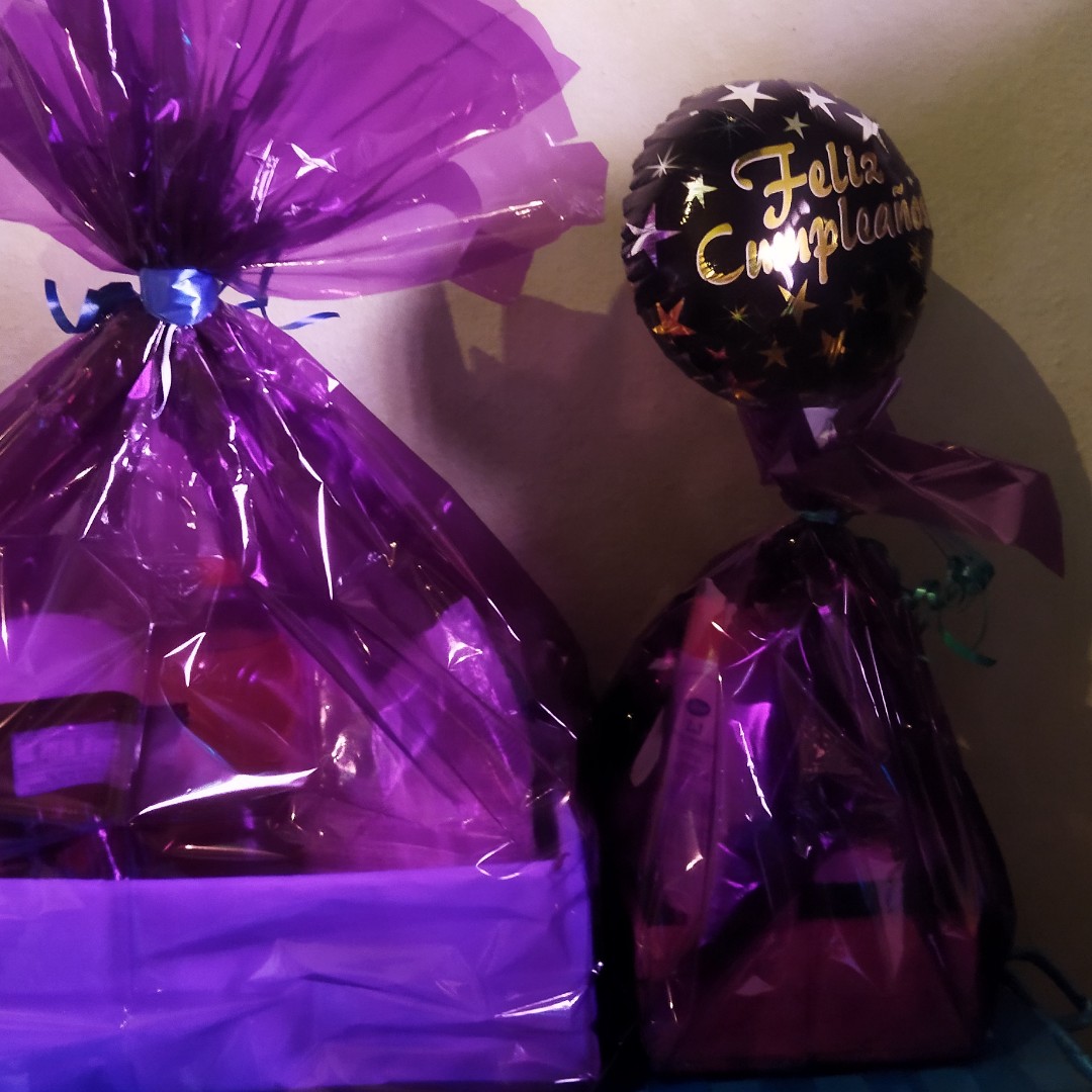 Hoy estuve con mi hermana preparando los regalos de mi abuela, le hicimos dos arreglos o cestas una de comida y uno con cosméticos, forramos una cajita y allí colocamos la comida y luego la forramos con papel celofán, y la otra es una cestica de madera más pequeña allí colocamos los cosméticos, igual la forramos con papel celofán, mi hermana y yo no somos muy diestras con eso de los arreglos pero lo hicimos con mucho amor para mi abue.