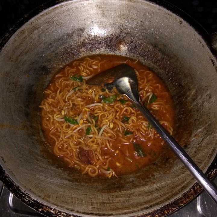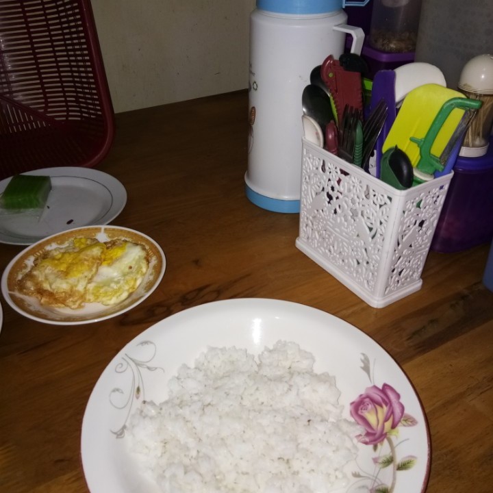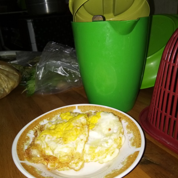 Makan sahur pagi ini sangatlah sederhana, hanya dengan menggoreng telur ayam,juga memasak mei instan sebagai lauk pauknya.