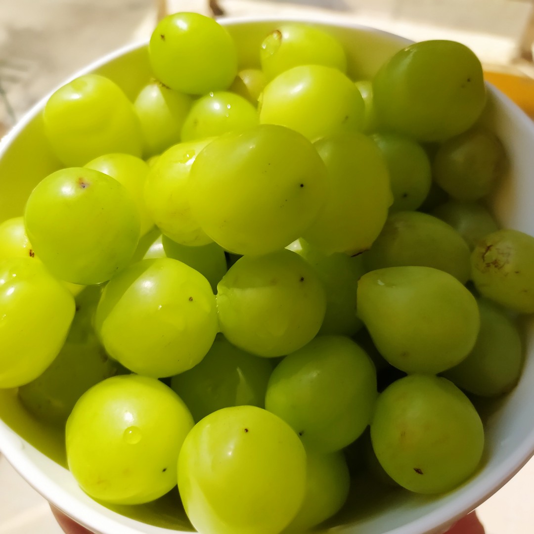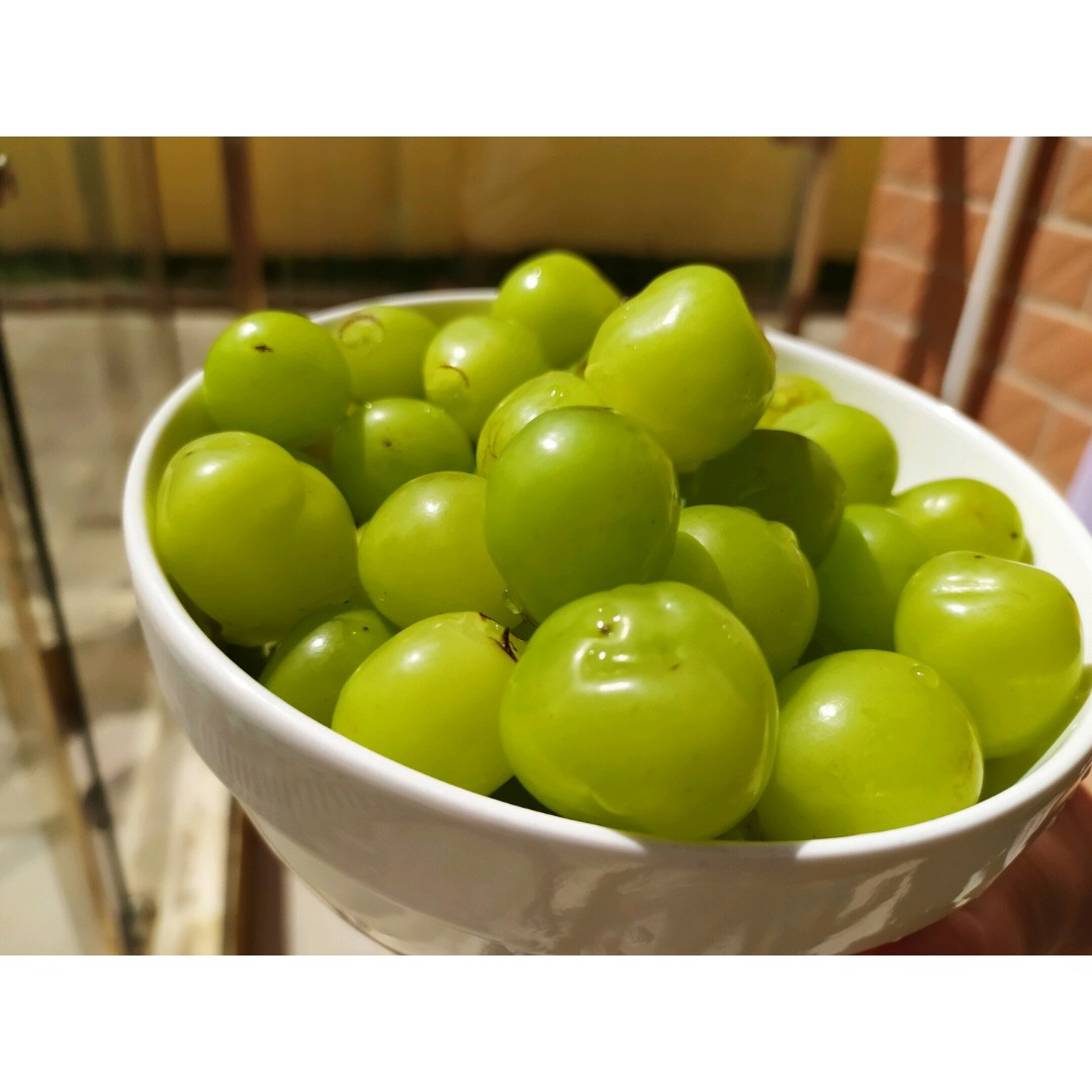 这是一碗被拍成大青枣的青提,阳光下的照片不太看得出是提子,除了山峰,其实很多东西在不同的环境,不同的角度都会呈现不同的状态,就像画杨桃的故事一样。