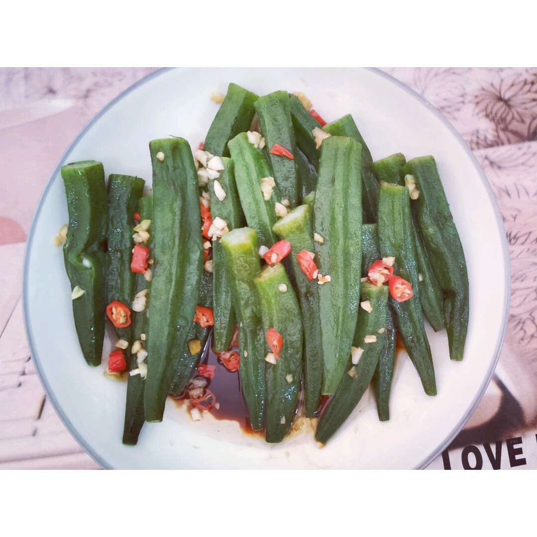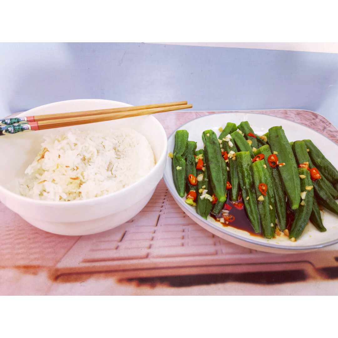 周末不想煮太复杂的菜,也不想有油烟味,所以就做了这道白灼秋葵。秋葵烫熟,放辣椒蒜泥,烧热油浇上,倒酱油一拌,简单、省时、好吃的菜就完成了。