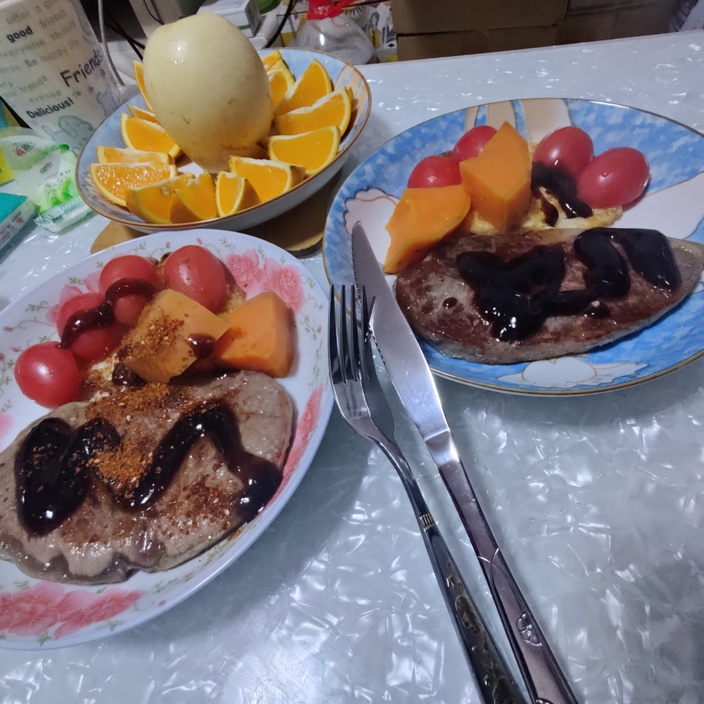 今天晚上煎牛排的时候...