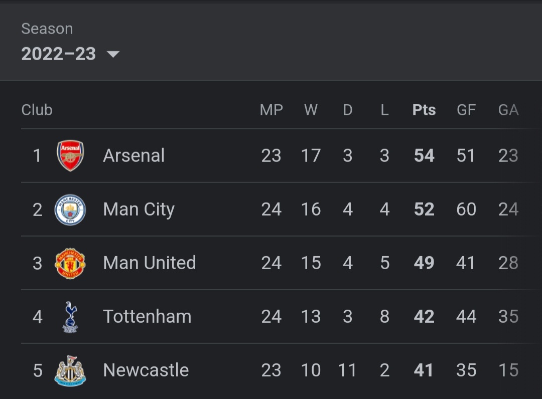 Man United joined the title challenge after Arsenal drop so much lately and they give chance for Man City and Man United to come close. Looking at the current standing, Arsenal are ahead Man City with 2 pts and Man U with 5 pts with a game in hand.