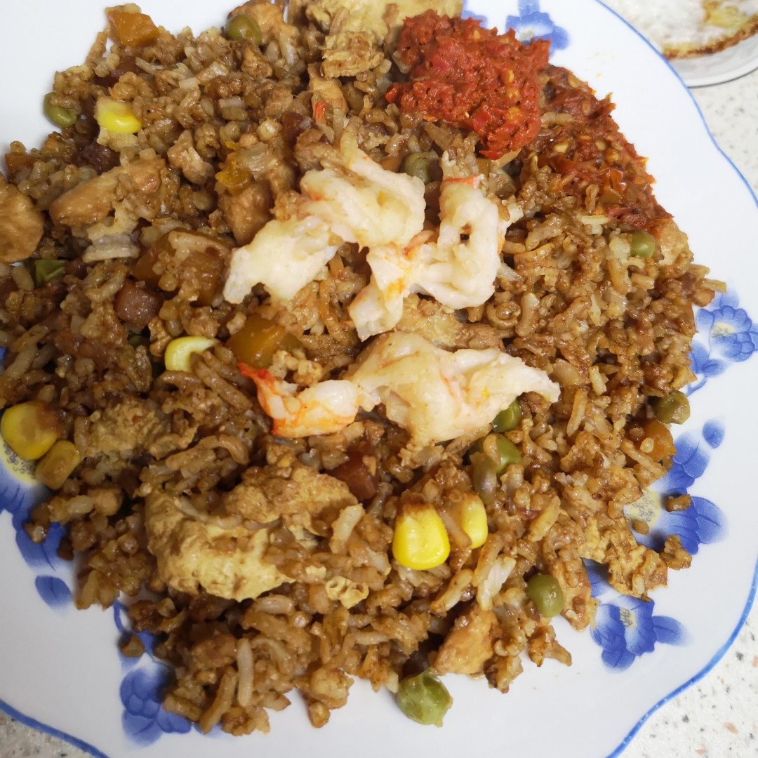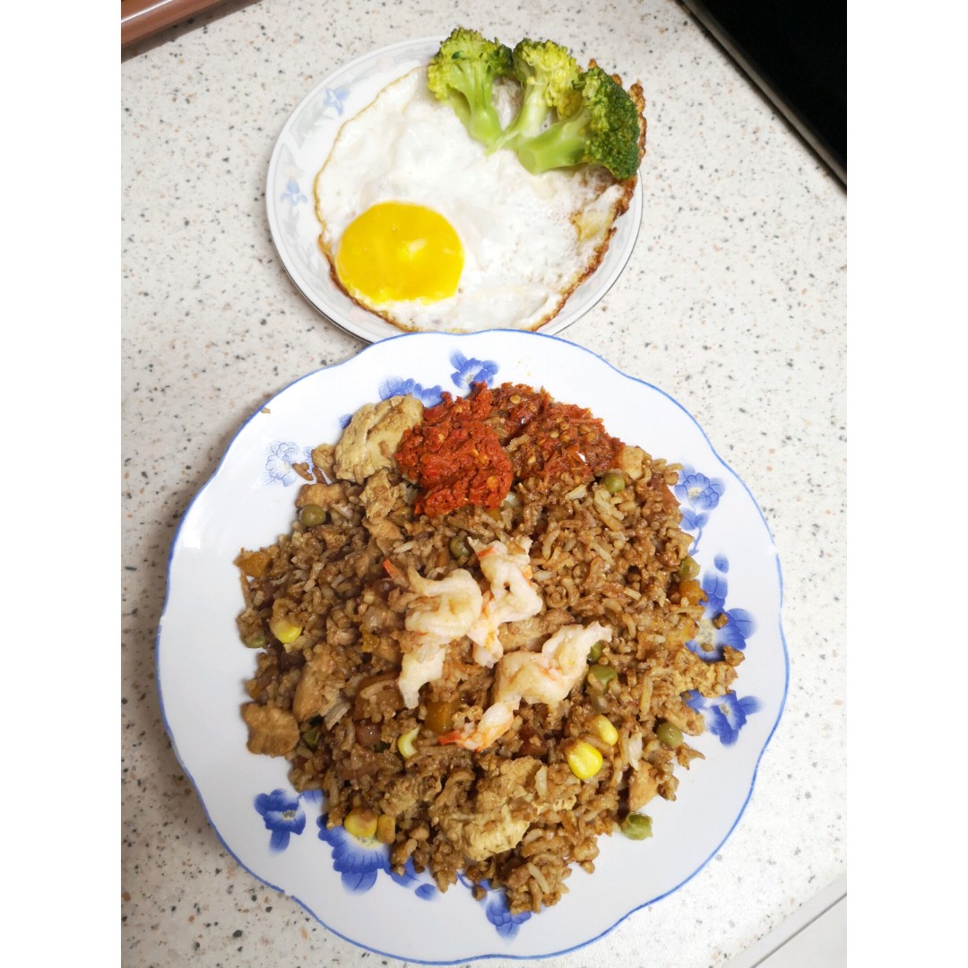 The rest at home had fried rice I cooked earlier. With fried egg and steamed broccoli.