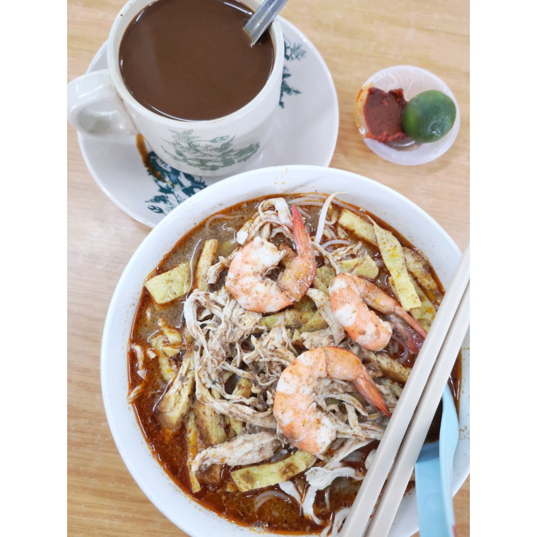 I was grateful that husband let me have some me-time outside, to eat my favourite food, 'Kuching laksa' and to sip my favourite local coffee with milk. He took care of the children and he asked me to go slow, breathe and eat slowly. Look at my appetising 'Kuching Laksa', rice vermicelli with curry soup.
