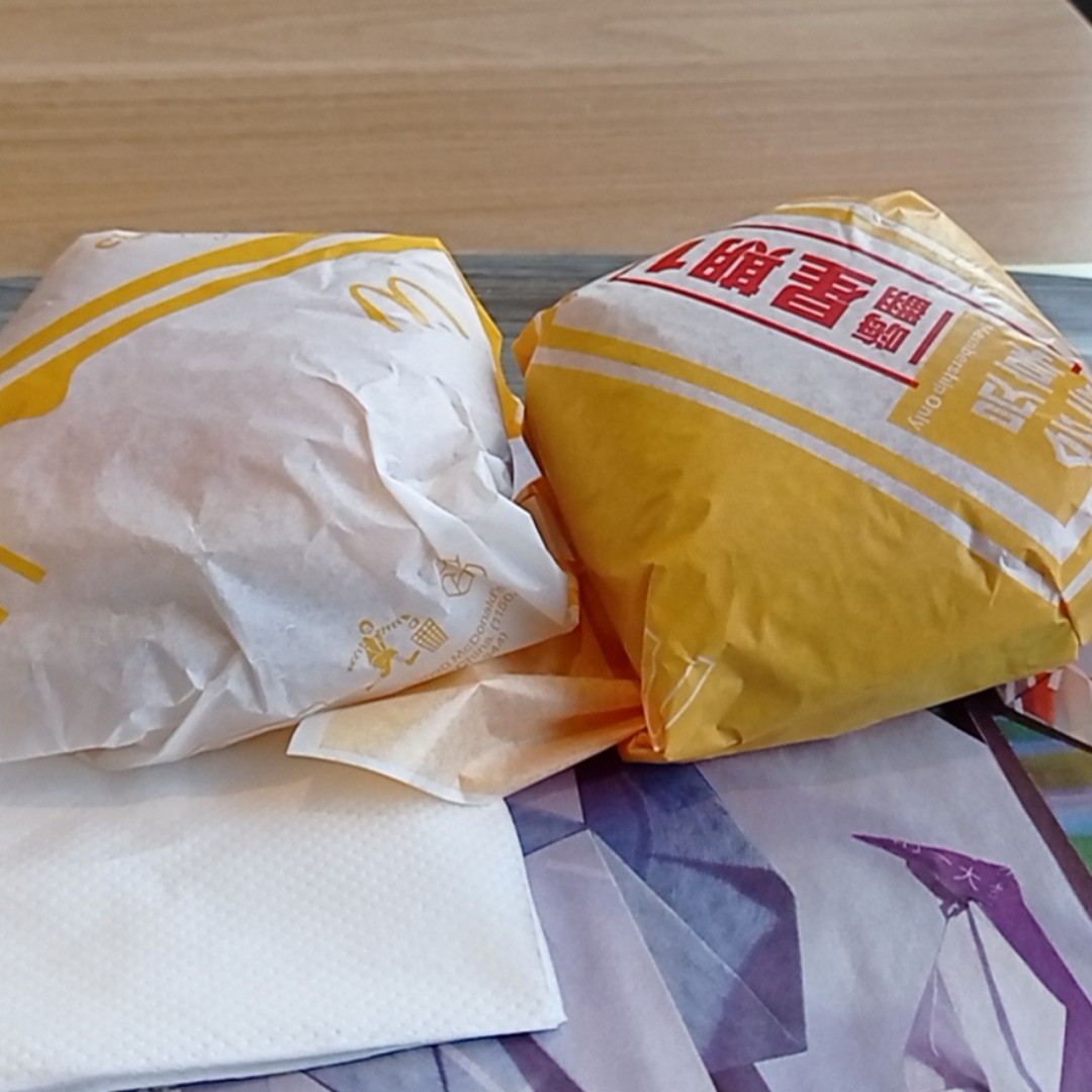 中午吃的麦当劳的新品,说实话挺一般的。应该不会再尝试吧。我还是喜欢吃双层吉士汉堡。两个汉堡加上一杯饮料,扣掉支付宝的优惠,花了21块。