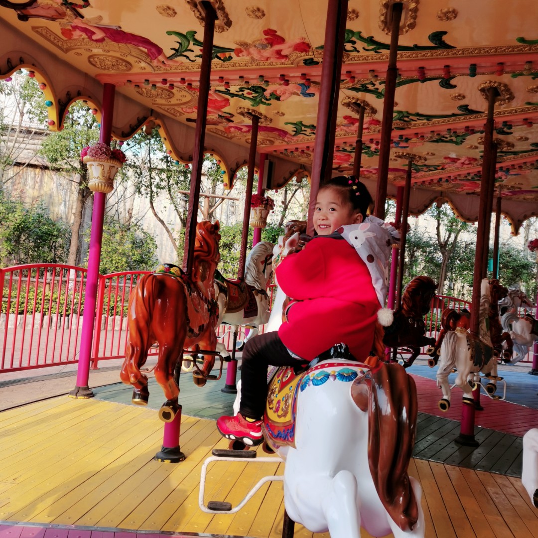 虽然是妈妈了,对旋转木马也是情有独钟。可能是小时候没坐过,也可能是韩国偶像剧看多了。