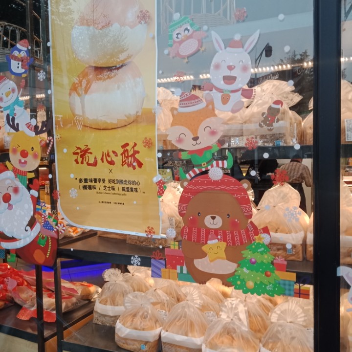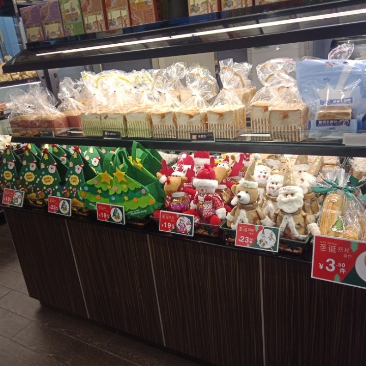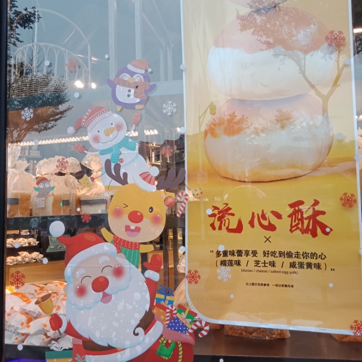 随着圣诞节来临,经常光顾面包店粘了圣诞老人系列图片,里面摆设了圣诞糸列面包,增添了不少色颜。钿宝喜欢这个节日(因为喜欢雪人),记得旧年小姐姐送一对雪人给她开心不得了。╭(╯ε╰)╮