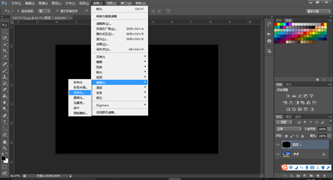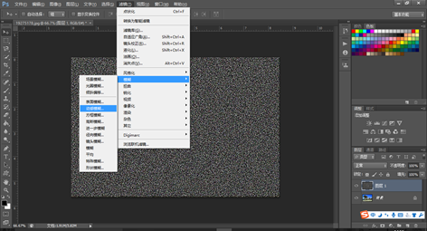 第七步,填充之后,在PS菜单栏中选择“滤镜——像素——点状化”。如图所示: