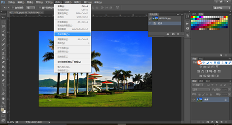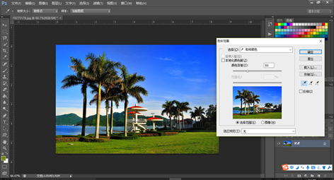 第一步,用PS软件打开准备好的图片,单击菜单栏中“选择——色彩范围”。 如图所示: